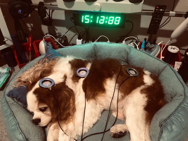 July 1,2024, our Veterinarian advised us to say goodbye to our 15 year old Cavalier King Charles, PRINCE CHARLIE. Not prepared for the ominous news of his heart, kidney and increasing neurological issues, I responded by designing what is called his wellness center with a custom THERAPY TOWER II (left side of the video). Single, to programmable hz frequency brain entrainment.